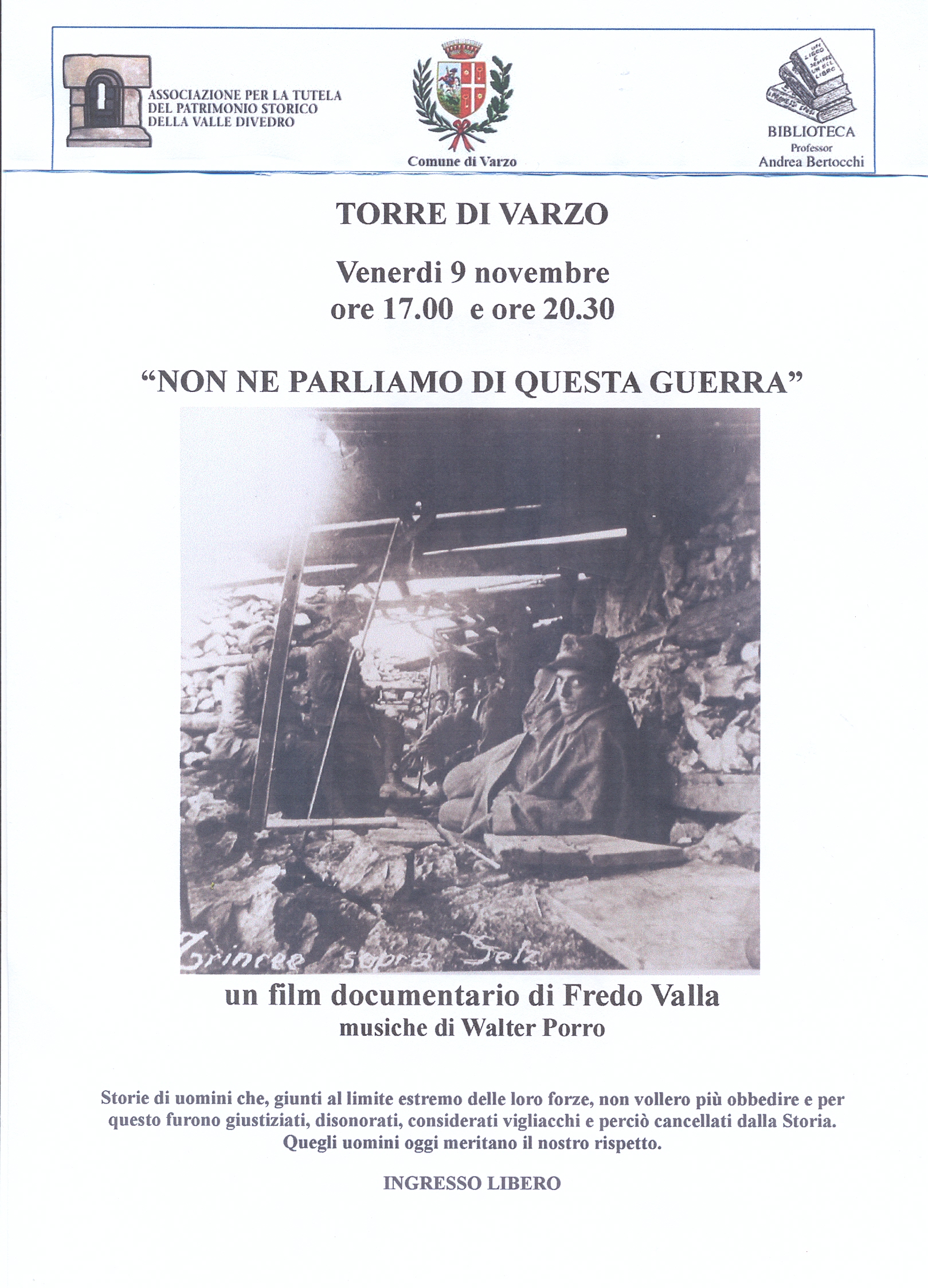 Proiezione film documentario di Fredo Valla " Non ne parliamo di questa guerra"
